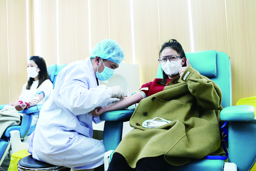 圖為康定市民李女士為災(zāi)區(qū)傷員獻(xiàn)血。