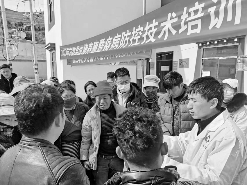 農(nóng)牧專家向村民講解養(yǎng)殖技術(shù)。