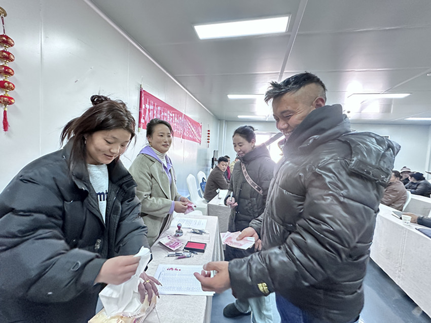 在隨后舉行的分紅儀式上,鄉(xiāng)黨委書(shū)記、公司負(fù)責(zé)人分別就合作方案、相關(guān)政策進(jìn)行了宣講,還對(duì)集體經(jīng)濟(jì)進(jìn)一步發(fā)展等進(jìn)行了分析和總結(jié),簽訂了深化合作協(xié)議。分紅現(xiàn)場(chǎng),村民們有序地對(duì)賬、簽字、領(lǐng)取分紅,臉上洋溢著幸福的笑容。大家表示這一切都要感謝黨和政府的關(guān)心關(guān)懷和好政策,更加堅(jiān)定了聽(tīng)黨話、感黨恩、跟黨走的信心和決心。據(jù)悉,此次分紅主要是旺達(dá)村于2023年7月投入奶茶生產(chǎn)設(shè)備的收入,此次25戶(hù)群眾分得12500元現(xiàn)金,價(jià)值7500元的糌粑奶茶,共計(jì)20000元。