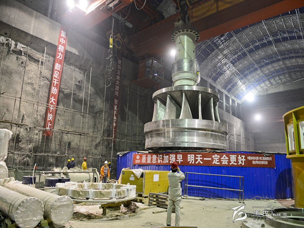 黃金坪水電站首臺機組轉(zhuǎn)輪吊裝就位