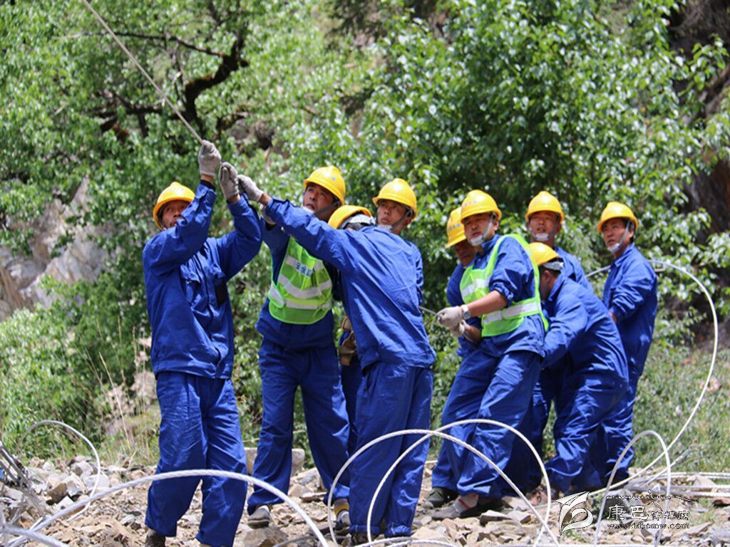 為了圓農(nóng)牧民通電夢,甘電公司誓要打好“決戰(zhàn)年”戰(zhàn)役。山高、路難、溝深、水急是今年無電區(qū)電力建設(shè)現(xiàn)場的真實寫照。在甘孜高原上奮斗著來自參建的監(jiān)理、建設(shè)和施工單位共計15支隊伍,他們和高原惡劣的氣候抗衡著,他們用“奮斗”二字譜寫著一首“電力人之歌”,為無電地區(qū)的藏族百姓早日通電打好了“決戰(zhàn)年”的戰(zhàn)役。在甘孜州各縣條件艱苦的無電地區(qū)工程建設(shè)點,隨處可見身著國網(wǎng)標(biāo)志的身影。在色達(dá)、甘孜、石渠、理塘、巴塘、雅江等邊遠(yuǎn)的“無電地區(qū)”施工現(xiàn)場,電力建設(shè)者們,頂寒風(fēng),斗冰雪,與惡劣環(huán)境抗衡,立塔架線,每天早出晚歸,完成一項又一項“難啃”的工程,夜晚燒堆篝火取暖,次日再次奔赴施工現(xiàn)場。這樣的“辛苦”記者在采訪過程中也見到。在雅江縣德差鄉(xiāng),手握對講機(jī),身穿工裝的工程項目負(fù)責(zé)人龍森和他所以在的工程隊的工人們每天都是頂著烈日、冒著風(fēng)雨加班加點在趕工程進(jìn)度,幾個月下來,有的工人身上被太陽曬掉了幾層皮??墒撬麄儚膩頉]有喊一聲苦,喊一聲累,晴天一身汗,雨天一身泥,每到一個點都出色完成了任務(wù)。在困難和辛苦面前,龍森和工人師傅堅定的說:“再苦再累我們也受得了,只要老百姓能盡快用上電做什么都值得。這段路線的電桿已經(jīng)全部立起來了,現(xiàn)在只剩下架線的工作。我們一定要在月底之前為這兩個村通上電。”