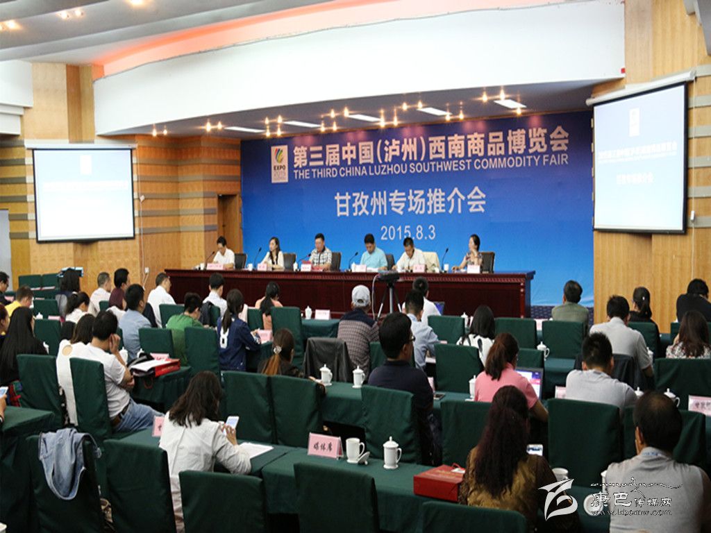 本網(wǎng)訊(記者 宋志勇文/圖)8月3日下午,由瀘州市人民政府舉辦的2015第三屆中國(瀘州)西南商品博覽會(以下簡稱“商博會”)專場推介會在我州康定市舉行。組委會期望通過商博會這一平臺,進一步加強和推動瀘州、甘孜兩地商貿(mào)領(lǐng)域的合作交流,與甘孜州的企業(yè)、產(chǎn)品共同開拓西南區(qū)域市場,提高我州企業(yè)、產(chǎn)品的市場占有率。
