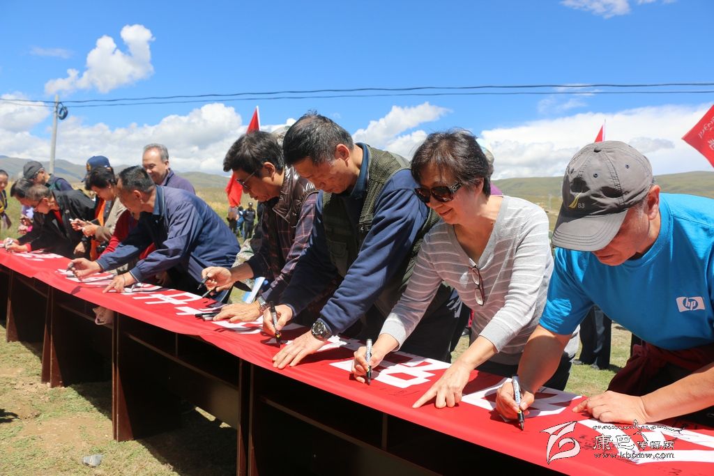 當(dāng)天中午,“甘孜州紀(jì)念紅軍長(zhǎng)征在甘孜80周年暨紅色文化旅游宣傳促銷系列活動(dòng)之紅軍后代重走長(zhǎng)征路活動(dòng)”在該縣十八軍窯洞群遺址隆重舉行,康北民族高級(jí)中學(xué)、斯俄鄉(xiāng)干部、武警官兵、寺廟僧人600人參加了此次活動(dòng)?;顒?dòng)中,紅軍后代們認(rèn)真聆聽了講解員介紹十八軍窯洞群鮮為人知、催人奮進(jìn)的歷史故事。他們敬獻(xiàn)花圈、整理挽聯(lián),向在高原上艱苦奮斗、舍身赴義的革命先輩們默哀。隨后,參與活動(dòng)人員在“藏漢一家親”和“紀(jì)念紅軍長(zhǎng)征在甘孜80周年”的巨型橫幅上簽名,并與紅軍后代徒步一公里,其間由學(xué)生、群眾代表、志愿者和紅軍后代互動(dòng)拉歌 。大家用自己的歌聲、自己的行動(dòng),回顧那段歷史,緬懷革命先輩的豐功偉績(jī),感受紅軍先烈們艱苦的生活環(huán)境和艱險(xiǎn)的戰(zhàn)斗歷程。