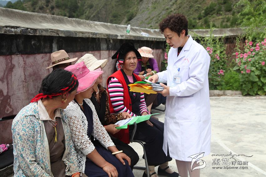 雅江縣醫(yī)務(wù)工作者向群眾發(fā)放包蟲病防治宣傳資料。