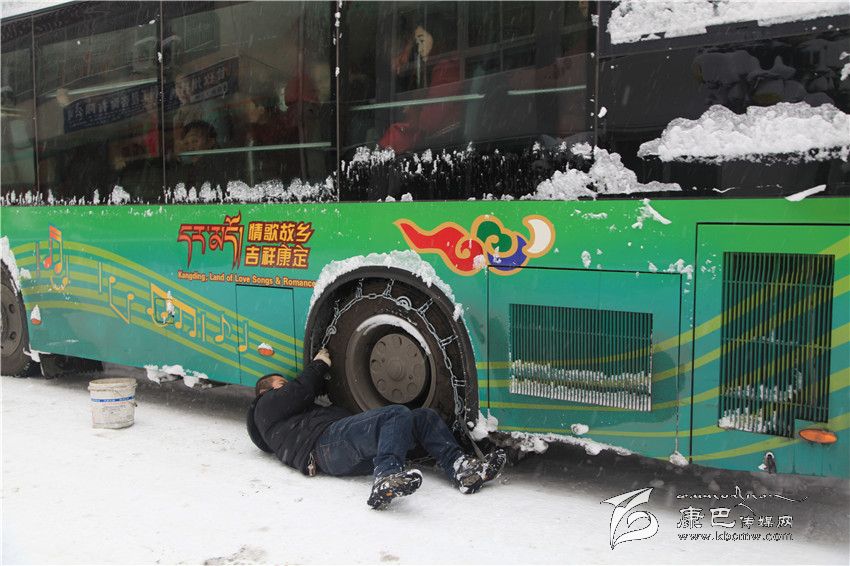 另一條街上,一輛電力搶險(xiǎn)車匆匆駛來,本報(bào)一位記者隨即登上了搶險(xiǎn)車。距候車點(diǎn)不遠(yuǎn)的路口,康定市公安交警大隊(duì)城區(qū)中隊(duì)的民警土登正在指揮車輛有序通過。土登告訴記者,除了早些時(shí)候趕往折多山的民警外,城區(qū)中隊(duì)民警已經(jīng)傾巢而出,分布在城區(qū)各個(gè)路口,以確保交通順暢。土登說:當(dāng)天早上康定老城的交通基本正常,沒有出現(xiàn)大的擁堵和交通事故,只是偶爾有車輛掛鏈條,會(huì)造成短暫堵車。他提醒人們:在積雪未融化前要減少駕車出行,即使駕車出行也要提前掛上防滑鏈,嚴(yán)格控制車速,確保行車安全。