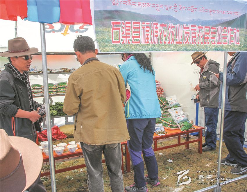 8月3日是石渠縣帳篷節(jié)的最后一天,清晨的陽(yáng)光透過(guò)炊煙傾灑在草原千余頂帳篷上,40多歲的藏族漢子嘎戎從生活區(qū)的帳篷里出來(lái),走向不遠(yuǎn)的太陽(yáng)部落帳篷商貿(mào)城集市。那里安扎著400多頂帳篷,有商戶370家,周邊還有50多個(gè)流動(dòng)的小商販。嘎戎所在的石渠縣福源農(nóng)牧業(yè)發(fā)展農(nóng)民合作社就是其中的一家參展商。從帳篷節(jié)開始,嘎戎就和其它5個(gè)人輪流值守這個(gè)他們倍加珍惜的展位,那是他們合作社自今年4月份成立至今第一次在如此重大的場(chǎng)合中露面,經(jīng)過(guò)這次檢驗(yàn),他們對(duì)自己的產(chǎn)品更加有信心。駐真達(dá)村第一書記祝修濤告訴記者,短短一個(gè)星期,合作社展售的糌粑、人參果、奶渣近2000斤,銷售額達(dá)4萬(wàn)多元。這個(gè)農(nóng)民專業(yè)合作社以扶貧為己任,從建設(shè)種植基地到水磨房加工投入了200多萬(wàn)元,全村50戶村民參與,合作社將原料統(tǒng)一發(fā)給村民加工,再統(tǒng)一收起來(lái),統(tǒng)一包裝銷售。祝修濤說(shuō),社里的產(chǎn)品剛開始只是在當(dāng)?shù)爻鍪?,雖然投入大但產(chǎn)量不敢做大,這次有這個(gè)平臺(tái)得到了市場(chǎng)的認(rèn)可,他們對(duì)合作社的發(fā)展充滿了信心。祝修濤,作為該村的第一書記,他要帶領(lǐng)著這個(gè)合作社好好規(guī)劃、大干一場(chǎng)。