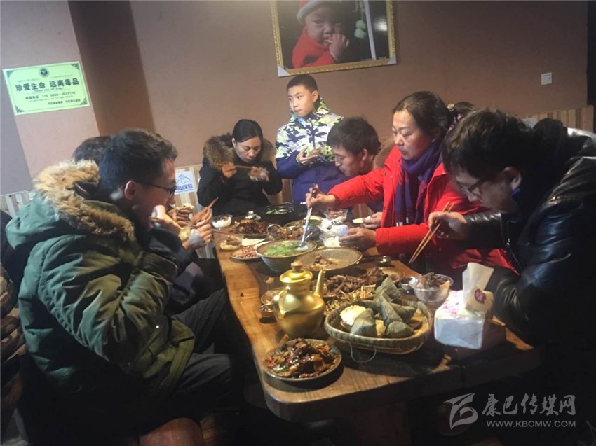 游客在甲居藏寨吃團圓飯。