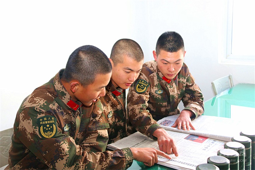 為充分發(fā)揮紅色文化凝神聚氣、鑄魂育人作用,激發(fā)廣大官兵弘揚(yáng)紅軍傳統(tǒng)、履行職責(zé)使命、砥礪戰(zhàn)斗精神的思想自覺(jué)、政治自覺(jué)和行為自覺(jué),近日,川西高原武警二支隊(duì)傾心打造了形式多樣、內(nèi)容豐富的“紅色文化套餐”,使官兵在潛移默化中感悟紅色文化的獨(dú)特魅力,在學(xué)習(xí)傳承中砥礪意志、激發(fā)斗志、提高素質(zhì),不斷厚實(shí)了部隊(duì)“紅色土壤”,不斷提升了部隊(duì)“軟實(shí)力”。圖為官兵在閱讀紅色書(shū)籍及黨報(bào)。 (張小剛 攝影報(bào)道)