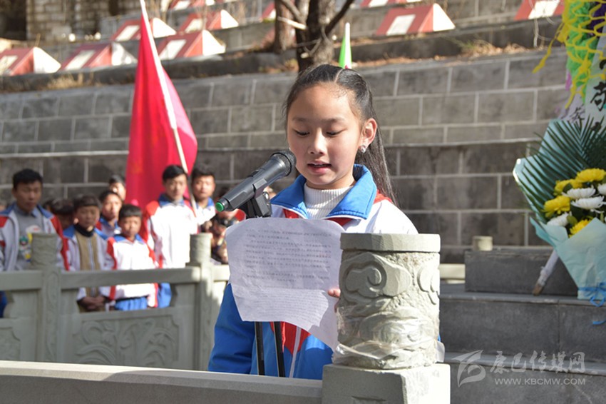 孩子們手捧自己制作的白花,面向著革命烈士紀(jì)念碑,表情肅穆。在向烈士默哀3分鐘后,活動發(fā)起者和學(xué)校師生代表們聲音洪亮、語氣激昂向紀(jì)念碑前的所有參與者激情演講,盡情的表達著他們對先烈的緬懷之情。