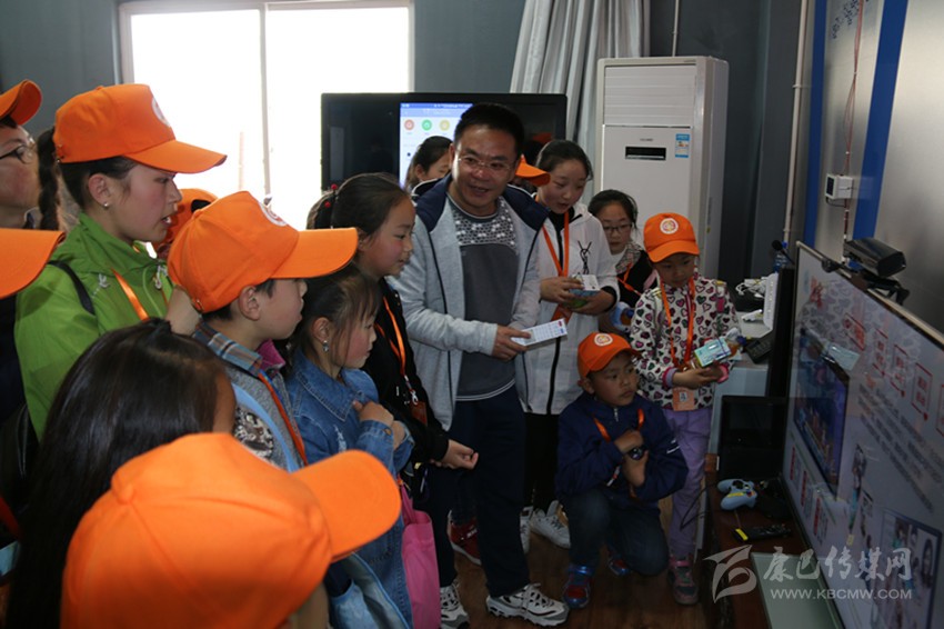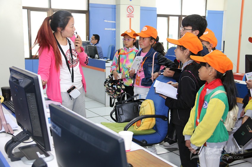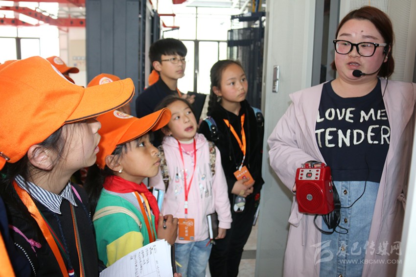 輔導(dǎo)老師為小記者講解電信知識(shí)。