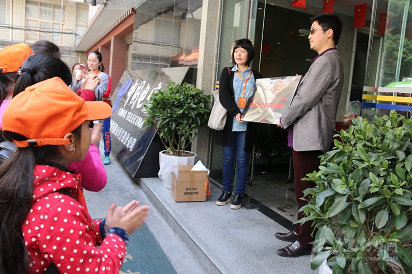 甘孜小記者活動(dòng)負(fù)責(zé)人向電信甘孜分公司市場(chǎng)部總經(jīng)理何宇檳頒發(fā)甘孜小記者實(shí)訓(xùn)基地牌。