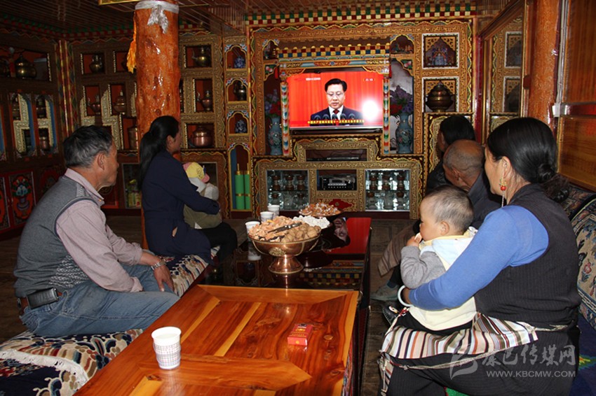 理塘藏族群眾在家中收看省黨代會開幕大會直播。