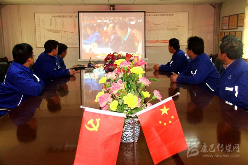 負(fù)責(zé)雀兒山隧道施工的中鐵一局干部職工正在收看開幕大會直播。