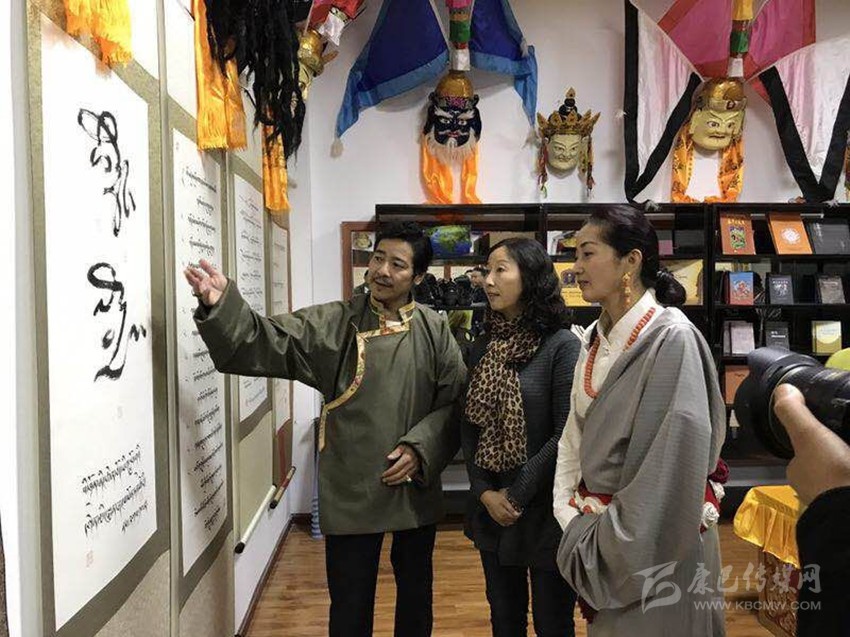 觀賞我州藏文書法作品。