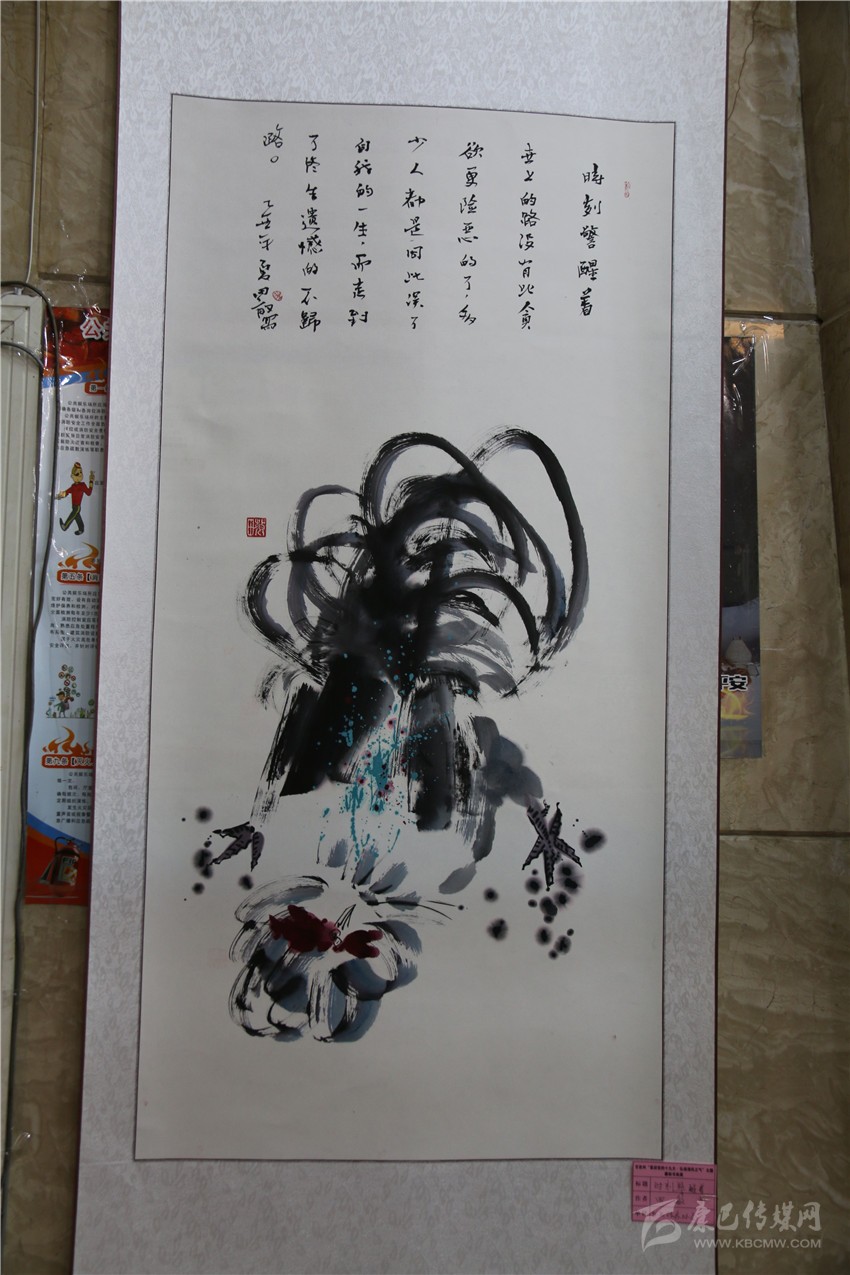 “‘松潔鶴鳴’是我親筆所繪,畫中‘松潔’表現(xiàn)的是黨員干部廉潔自律、風(fēng)清氣正的一種政治生態(tài)環(huán)境;‘鶴鳴’表現(xiàn)的是警鐘長鳴,時時刻刻向黨員干部敲敲‘鐘’?!敝堇夏甏髮W(xué)書法班今年70歲的胡鄧珠指作書畫作品興奮地說。