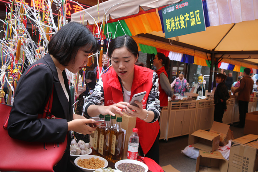 電商元素突出,注重電商扶貧是此次展銷活動的另一特點。此次展銷活動采用了“線上線下互動”的模式,既有現(xiàn)場售賣,又有線上體驗;掃碼關注店鋪微信公眾號,掃碼進入網(wǎng)店頁面,微信付費享受折扣等,顯示電商思維的營銷手段層出不窮;各參展商家為推廣自家網(wǎng)點開設的限時低價搶購活動,更引發(fā)數(shù)百名消費者爭相參與。而電商扶貧則是此次活動的出發(fā)點之一?;顒硬粌H專門設立有精準扶貧產品專區(qū),而且以貧困村農牧民專業(yè)合作社為主要參展企業(yè)。所有參展企業(yè)均為免費入駐參展,活動主辦方還盡力保障企業(yè)利潤。