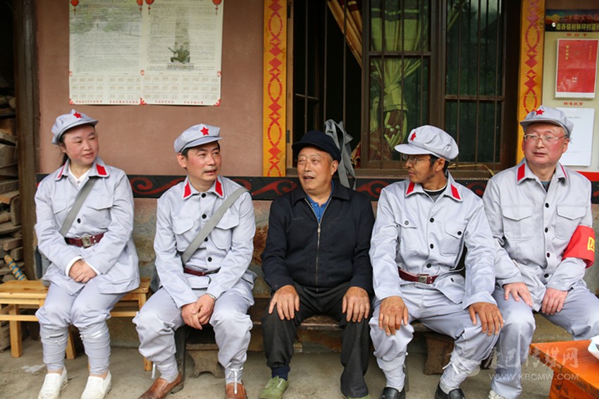 在磨西鎮(zhèn)伯秧坪村聽(tīng)紅軍故事。