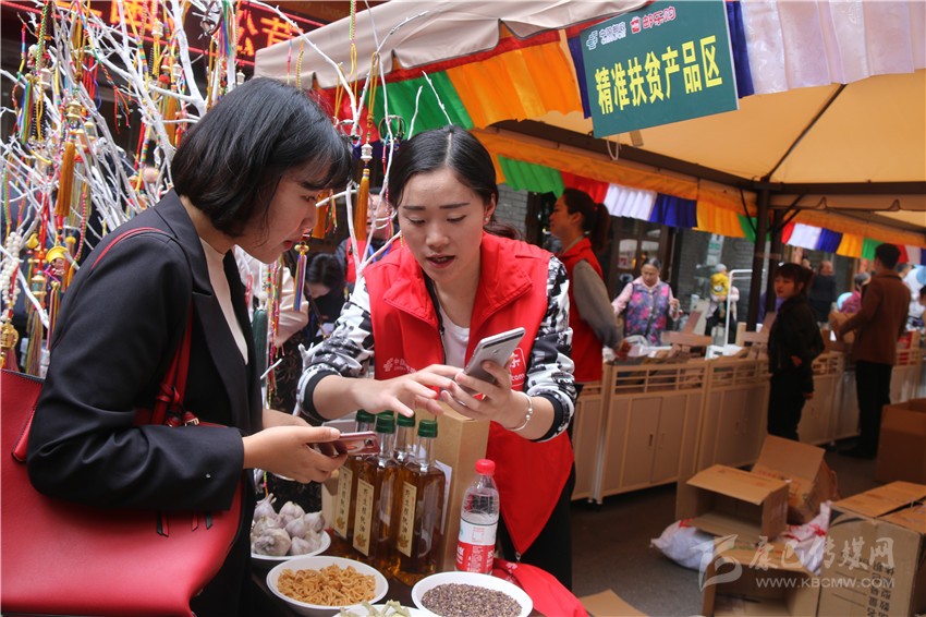 工作人員正在向消費者推薦本土電商平臺。