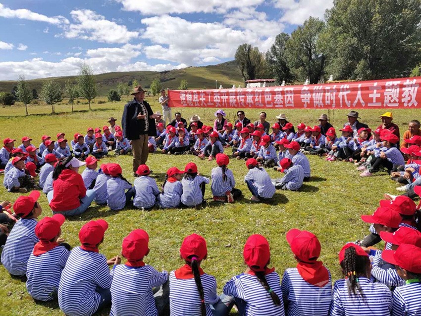 本網(wǎng)訊 9月4日,理塘縣甲洼鎮(zhèn)向陽(yáng)寺外的草壩上,鎮(zhèn)小學(xué)的全體師生津津有味地聽(tīng)“五老”志愿者講先烈們的故事和翻身農(nóng)奴如何過(guò)上幸福生活的鮮活事例。