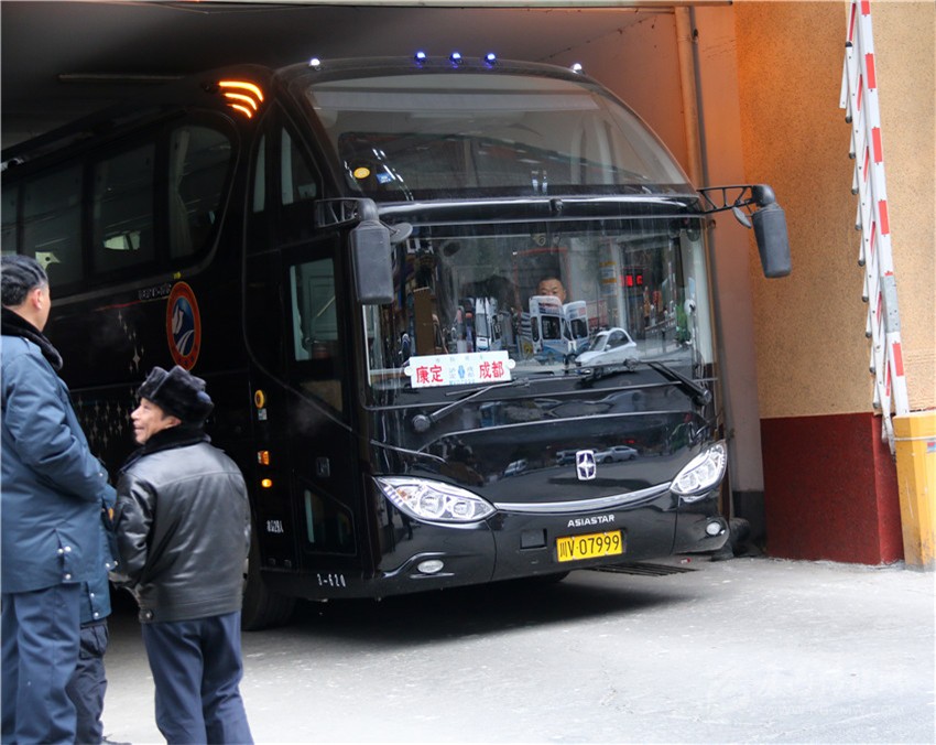 首臺(tái)“黑金剛”超豪華大巴車從康定發(fā)車了。