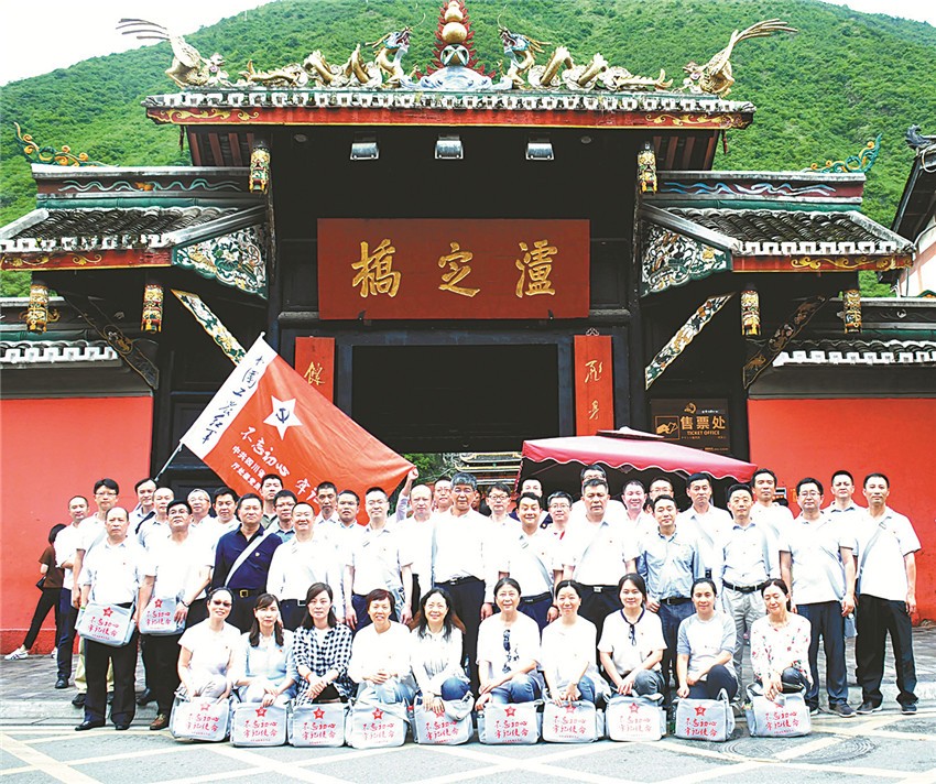 四川省委黨?!安煌跣?牢記使命”主題教育培訓(xùn)班在瀘定橋頭合影。