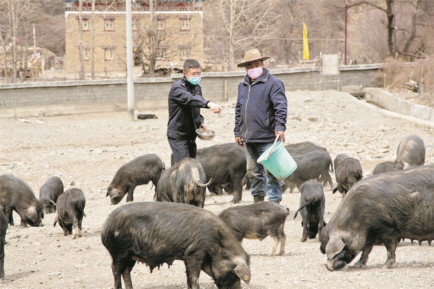 2015年,澤仁瓦吉的生活出現(xiàn)了轉(zhuǎn)機(jī),得知他在村里養(yǎng)過豬,且因家中老人生病治療欠下了不少外債的情況后,鄉(xiāng)領(lǐng)導(dǎo)、包村干部和幫扶責(zé)任人幾次三番找到他,和他談心嘮家常,鼓勵(lì)他繼續(xù)養(yǎng)殖藏香豬,并給他帶來了產(chǎn)業(yè)發(fā)展的好政策。