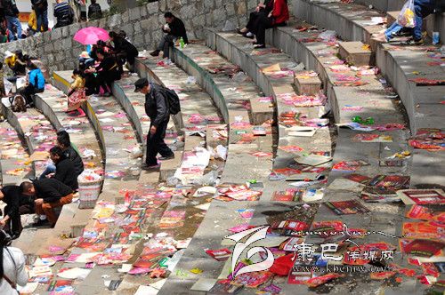 2014年05月06日,四川省甘孜藏族自治州,跑馬山景區(qū)垃圾遍野。當(dāng)天是農(nóng)歷四月八轉(zhuǎn)山會,景區(qū)免門票,至少有上萬游客涌入景區(qū),參加轉(zhuǎn)山會活動。