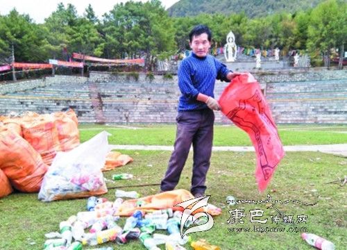 5月6日是康定縣一年一度“四月八”跑馬山國際轉(zhuǎn)山會,上萬人在跑馬山上祈福游玩。5月7日在一家爆料網(wǎng)站上一位網(wǎng)友發(fā)布了一篇名為《甘孜康定跑馬山萬人轉(zhuǎn)山會后垃圾遍野》的微博。微博原文中說:“2014年05月06日,四川省甘孜藏族自治州,滿負(fù)荷的垃圾桶。跑馬山景區(qū)垃圾遍野。當(dāng)天是農(nóng)歷四月八轉(zhuǎn)山會,景區(qū)免門票,至少有上萬游客涌入景區(qū),參加轉(zhuǎn)山會活動。”針對該網(wǎng)友爆料的情況記者走訪了康定跑馬山景區(qū)。在景區(qū)現(xiàn)場記者的確見到大量的垃圾“橫尸遍野”。藍(lán)天白云、青青草地真可謂詩情畫意,可是眼前的美景卻被無數(shù)的垃圾破壞。不知何時起旅游、垃圾仿佛成了連體嬰兒,甩也甩不掉,什么時候長假、旅游與垃圾才能隔離開來呢?帶著疑問記者采訪了景區(qū)相關(guān)負(fù)責(zé)人。
