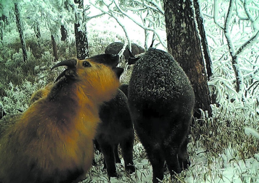 王磊介紹說,因?yàn)榧t外線相機(jī)的安裝都在海拔較高的地方,工作人員去安裝和收集的時間成本較高,一般是4個月到半年收集一次。據(jù)悉,半年多時間里,紅外相機(jī)共拍攝到大熊貓、金絲猴、扭角羚、綠尾虹雉等國家一級保護(hù)野生動物6種,黑熊、巖羊、水鹿等國家二級保護(hù)野生動物10種。