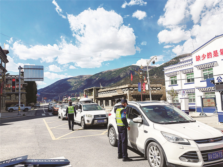 在巴塘縣公安局竹巴龍派出所,21名民輔警負責從西藏返川人員的查緝和疫情防控。每天對300多輛車和600余名旅客進行測溫、查健康碼、行程卡,協(xié)助開展核酸檢測等,他們不敢有半點馬虎。所長居勉表示,嚴格按照州、縣防控要求,大家對所有車輛進行編號排隊,實行首尾車制統(tǒng)一護送至縣城集中隔離點?!耙咔殛P(guān)鍵時刻絕對不能掉鏈子,干工作必須要認真負責。”居勉補充說。