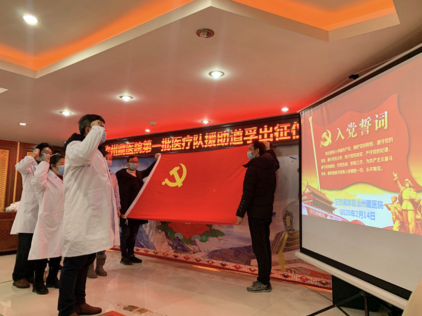 事實證明,州藏醫(yī)院的擔(dān)心和提前準(zhǔn)備完全是必要的。2020年2月,道孚縣爆發(fā)疫情,全縣進入管控狀態(tài)??粗约旱募亦l(xiāng)發(fā)生疫情,州藏醫(yī)院的醫(yī)護人員心急如焚。盡管對這未知的病毒心中沒底,但沒人退縮,全院上下皆積極請戰(zhàn)。在醫(yī)院黨委再次申請下,州抗疫指揮部研究同意了藏醫(yī)院參與抗疫工作,2月14日,在時任副院長、主任藏醫(yī)師江吉村的帶領(lǐng)下,藏醫(yī)診療隊奔赴道孚。這是新中國成立以來,藏醫(yī)首次參加的大型抗疫阻擊戰(zhàn)。