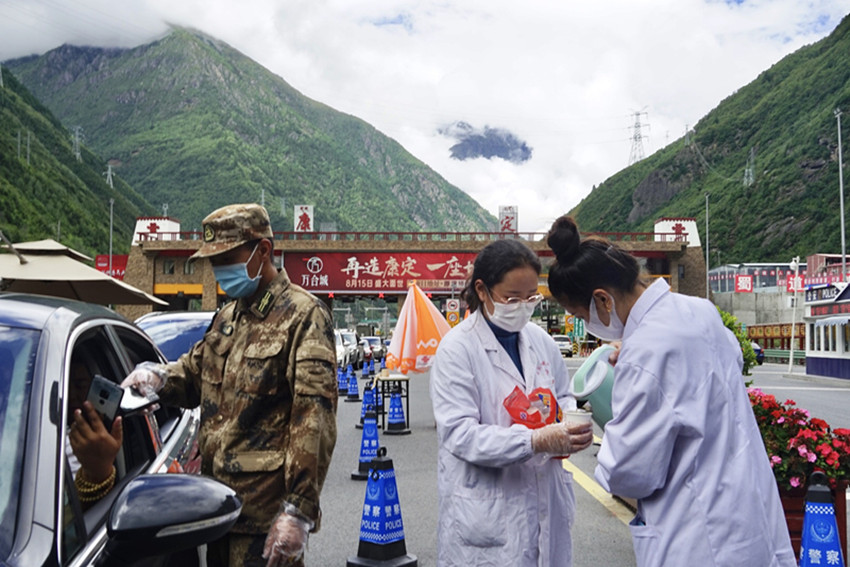 地震又遇疫情。大量救援隊進入災(zāi)區(qū),加大了當(dāng)?shù)匾咔榉揽氐膲毫Α闇p輕當(dāng)?shù)胤酪邏毫Γ?月6日,州藏醫(yī)院再次抽派8名醫(yī)務(wù)人員組成兩支核酸采樣隊,奔赴瀘定縣得妥鎮(zhèn)火線支援疫情防控工作。核酸采樣隊到達目的地后,在應(yīng)急指揮部的安排下,迅速投入到了緊張有序的采樣工作中。截止撤離時,共為當(dāng)?shù)亻_展了1萬余人次的核酸采樣。