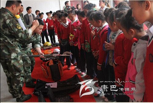 師生們在康定縣消防中隊副中隊長李勇的帶領(lǐng)下,參觀了消防員宿舍、榮譽室、軍人俱樂部等。官兵們“豆腐塊”的被子引起了學生們濃厚的興趣和強烈的好奇心。不少孩子親自動手,嘗試在消防官兵的指導下學習疊“豆腐”被子,并進行了內(nèi)務整理。在消防器材展示環(huán)節(jié),師生們走進車庫,中隊官兵介紹了各類消防器材裝備的名稱、性能和使用方法以及各類消防車、隔熱服、避火服、防化服和背戴空氣呼吸器等特勤器材的性能和使用方法。在消防安全課堂上,官兵們向?qū)W生們播放了《校園消防安全警示錄》,并結(jié)合實際向同學們講解了學校防火的重要性、火場逃生自救方法、初期火災的撲救、滅火器的使用、如何報火警等基本消防知識。在聯(lián)歡活動現(xiàn)場,消防官兵傾力打造的舞蹈《小蘋果Style》贏得同學們滿堂喝彩,現(xiàn)場響起熱烈的掌聲。學生們帶來的《吉祥中國結(jié),美滿中國夢》跳出了小朋友們的美滿幸福之情。文藝演出的最后,消防官兵們還為學生們帶來了消防時裝秀,穿著各式服裝的消防戰(zhàn)士閃亮登場,向孩子們講解了這些服裝在各種災害事故現(xiàn)場的用途。