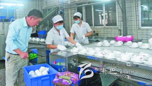 6、包裝。經(jīng)過消毒后的餐具被送到約2米長的綠色傳送帶上,工人先用手把餐具按照包裝要求擺放好。之后送到包裝機器,用包裝膜封口包裝。