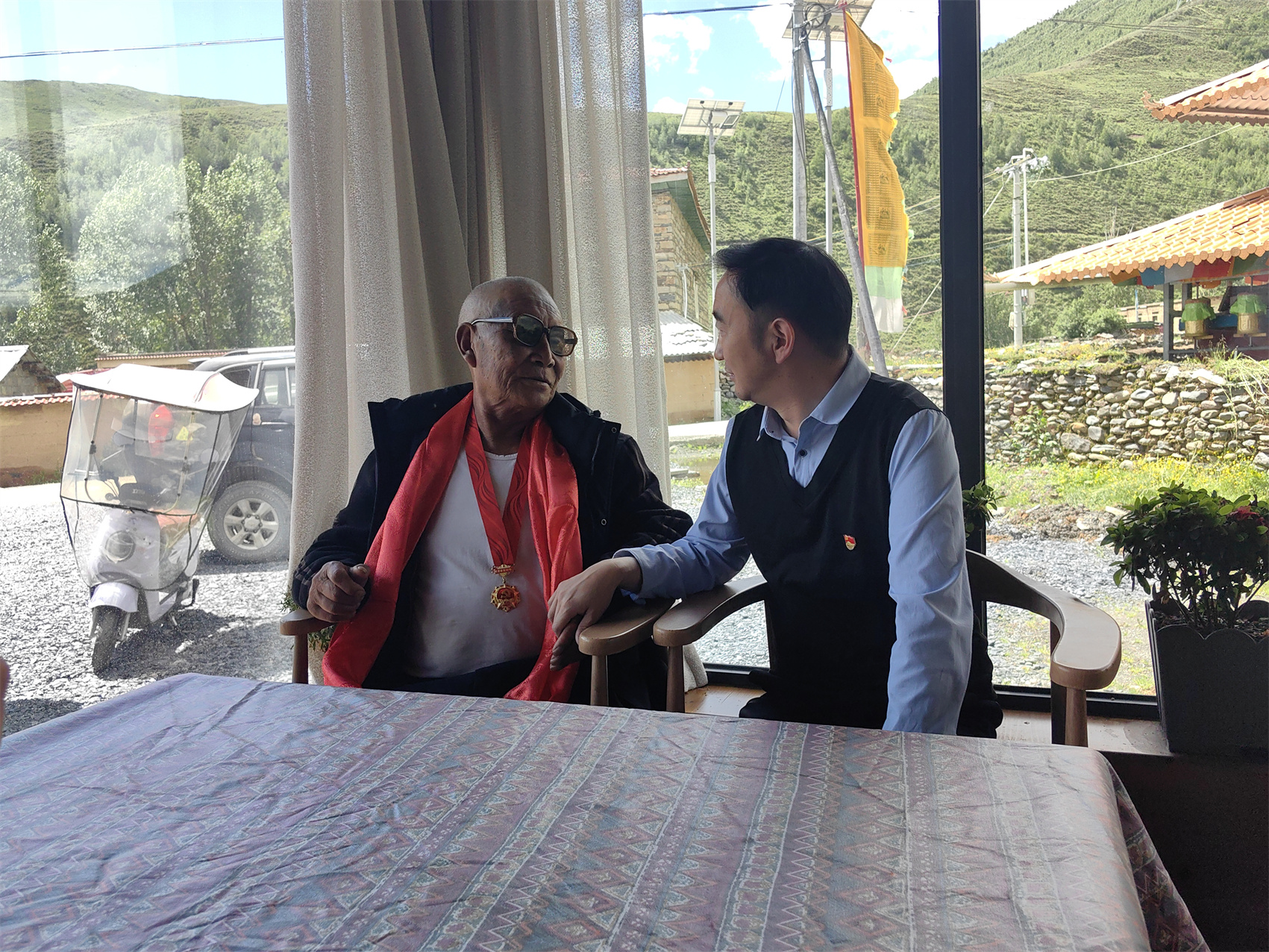 王宇(左)和群眾談心。