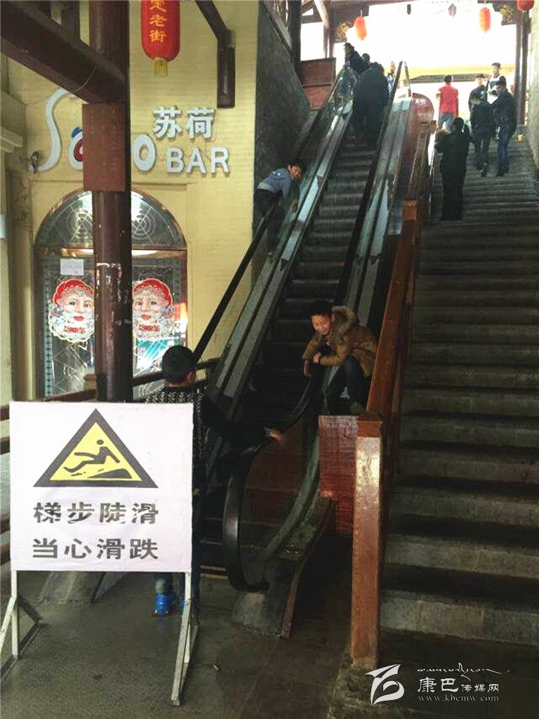 “唰,唰,唰”一群10歲出頭的孩子們從停運(yùn)電梯的扶手上飛速滑下,這是記者在康定“溜溜城”商業(yè)步行街下方出入口處電梯看到的一幕??匆?jiàn)記者在拍照,小學(xué)四年級(jí)的小亮(化名)絲毫沒(méi)有慌亂,嫻熟的翻越動(dòng)作表明這里是他和朋友們的常來(lái)之地。記者目測(cè)電梯長(zhǎng)度約有60米左右,上下落差較大,在電梯扶手上玩耍的孩子極易受傷。小亮和朋友們卻不以為然:“這個(gè)梯子好像游樂(lè)園里的激流勇進(jìn),好好耍哦!”孩子們完全忽略了潛在的危險(xiǎn)。