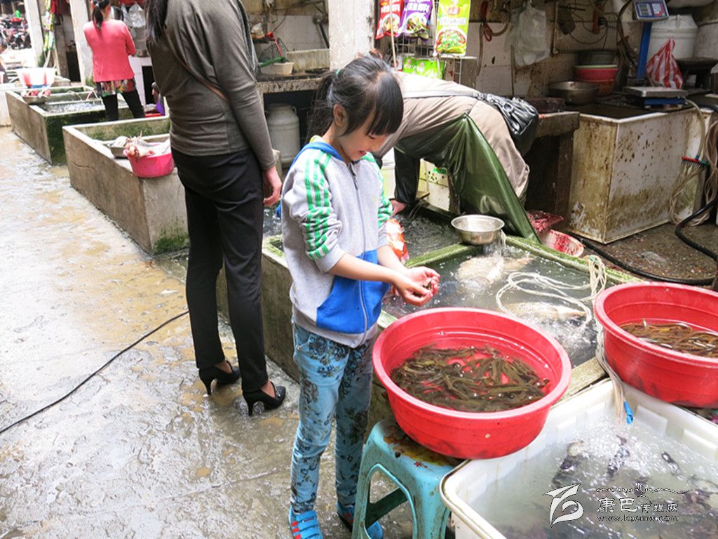 二年級學生露露,嫻熟地幫助父親售賣鱔魚。