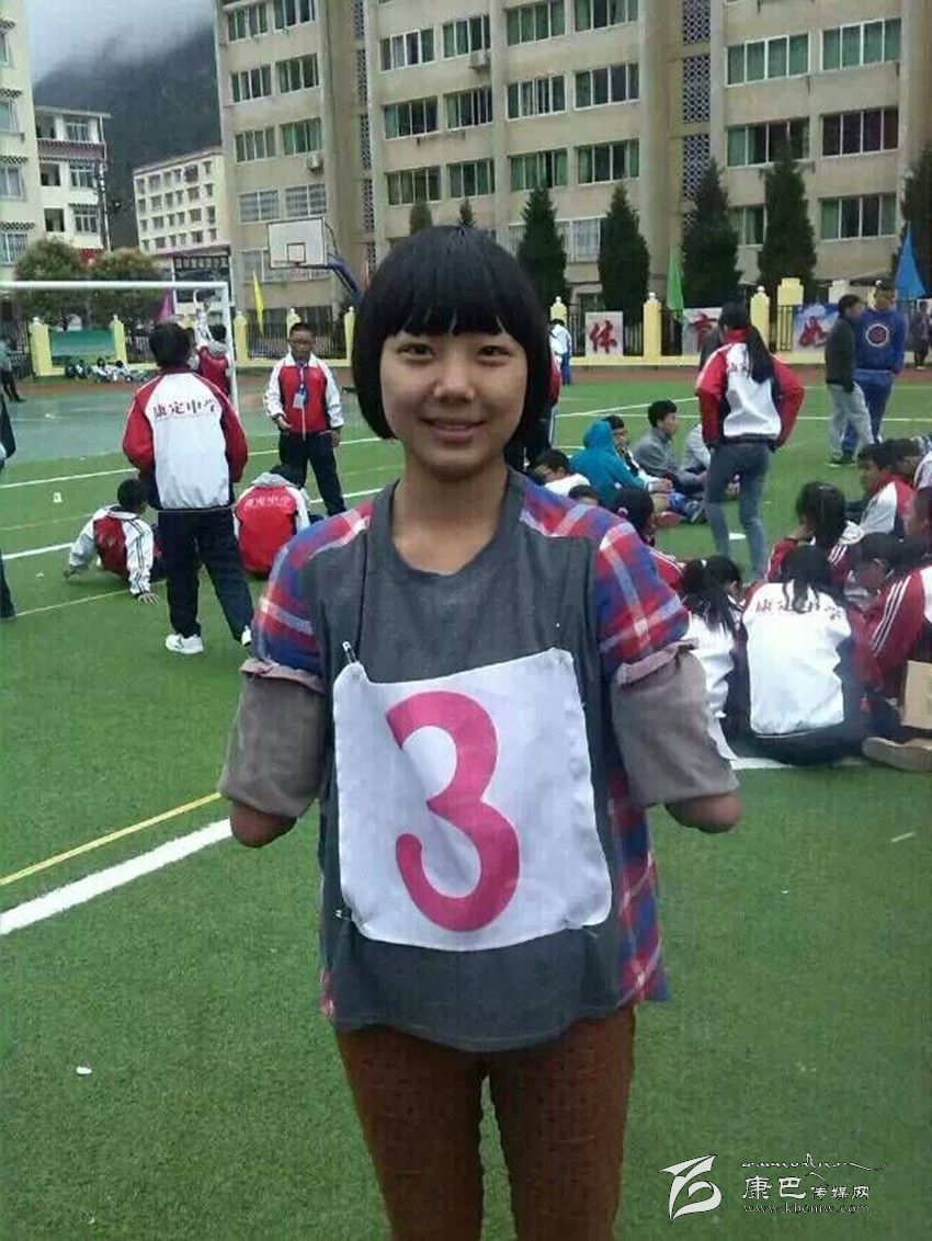 在康定中學(xué)校園里,你會(huì)邂逅這樣一位女孩:臉上永遠(yuǎn)燦爛著陽光般的微笑,雙眼永遠(yuǎn)閃爍著自信樂觀的光芒。教室里,她聚精會(huì)神地聽課;圖書館里,她專心致志地讀書;操場上,她身輕如燕地奔跑;寢室里,她開心爽朗地和同學(xué)交流??赡阕屑?xì)一看,她竟然沒有雙臂,就像折翼的天使。她就是該校高2016屆8班學(xué)生,羌族女孩許方燕。行走在高原的風(fēng)中,她是一幀讓每一個(gè)人內(nèi)心泛起感動(dòng)漣漪的美麗風(fēng)景……
