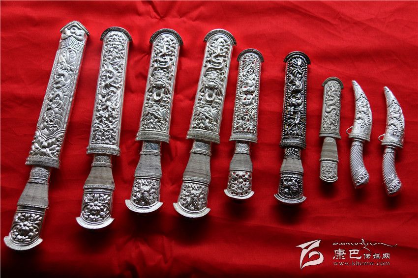 段承長開創(chuàng)的“九龍·飛鷹”刀品牌從2009年起已經(jīng)連續(xù)兩屆被評(píng)為甘孜州知名商標(biāo)。九龍縣民族工藝藏刀“飛鷹刀”始創(chuàng)于公元1902年,至今已有一百多年的歷史,段承長是家族第三代傳承人。經(jīng)過幾代人的反復(fù)研究和不斷努力,已經(jīng)將“飛鷹刀”這種帶有民族特色的工藝藏刀,打造成為了民族服飾裝飾以及生活必須為主要用途的工藝品,并且具有一定的收藏價(jià)值。在九龍做客,主人家視你為貴客,那么在你離開之際必將贈(zèng)送你一把“飛鷹刀”,以代表珍貴之意。在九龍本地,由于“飛鷹刀”鍛打精致、鐫刻細(xì)膩、色彩奪目、并附有藏文,系有五顏六色刀穗,形成別具一格的藏族工藝品。在朋友喬遷、結(jié)婚或喜生嬰兒時(shí),送上一把“飛鷹刀”會(huì)令主人感到格外高興。