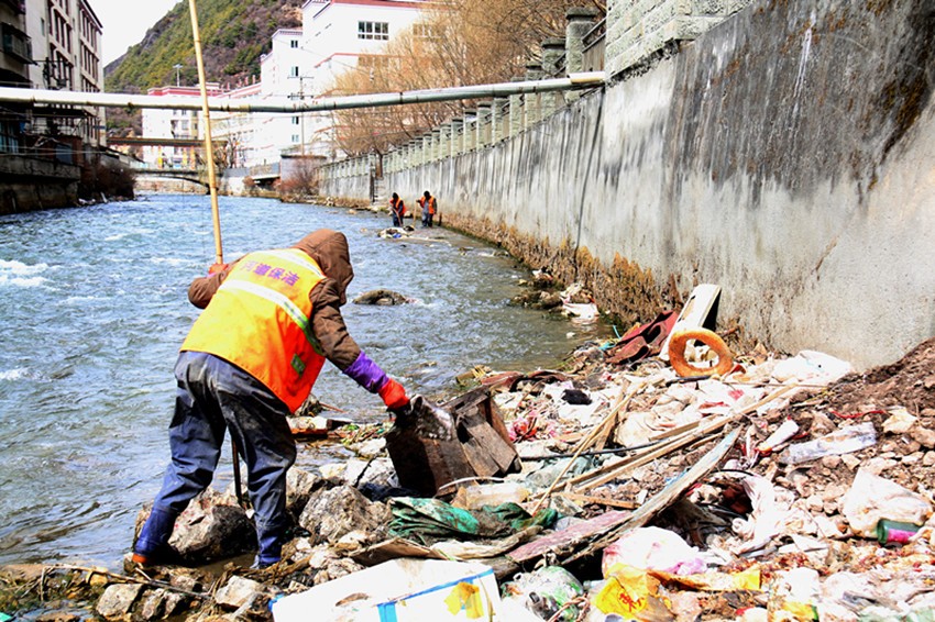 時間倒回至2月8日,一則關于“康定城區(qū)河道垃圾成堆”的消息在網絡發(fā)布,引發(fā)輿論嘩然。尚在春節(jié)假期中,相關部門便組建河道保潔小分隊,出動數(shù)名執(zhí)法人員和8名專業(yè)保潔工人,開始對城區(qū)河道進行全面清理。