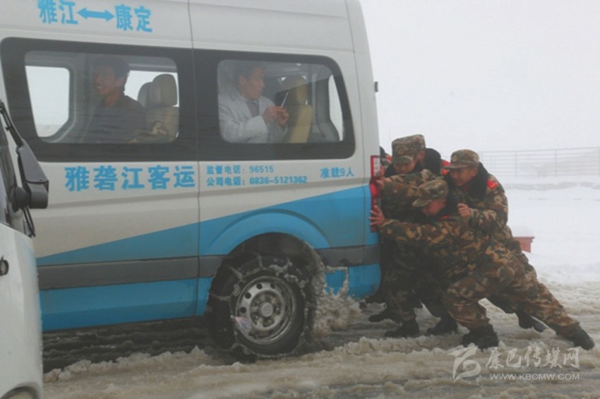 27日13時19分,前方記者傳回最新山頂?shù)缆繁Mㄇ闆r。州公路局已協(xié)調(diào)州本級、康定市和瀘定縣公路管理部門,出動3臺大型機具,投入54人次,推雪清障,并沿途鋪撒10余立方米防滑沙;交警部門有序疏導滯留車輛緩慢下山,武警戰(zhàn)士和其他相關人員全力清障保暢通。