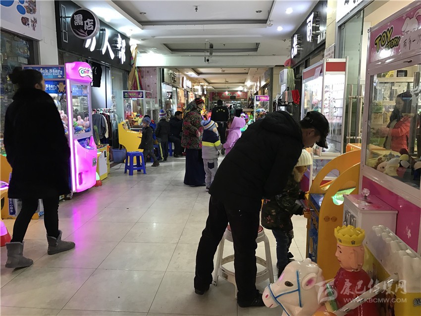 整個情歌廣場地下商城巷道內(nèi)擺滿了各式游戲機、搖搖車。