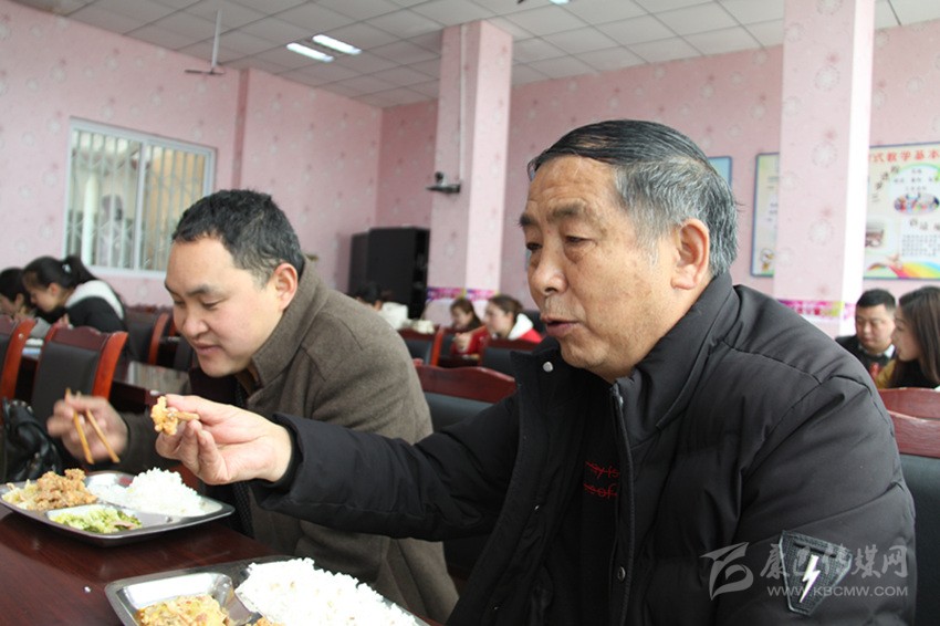 十幾分鐘的時間,陪餐家長已將餐盤里的實(shí)物風(fēng)卷殘?jiān)瓢恪跋唇僖豢铡?。吃得健康,吃得安逸,科學(xué)合理的膳食搭配,讓家長們無法企及。