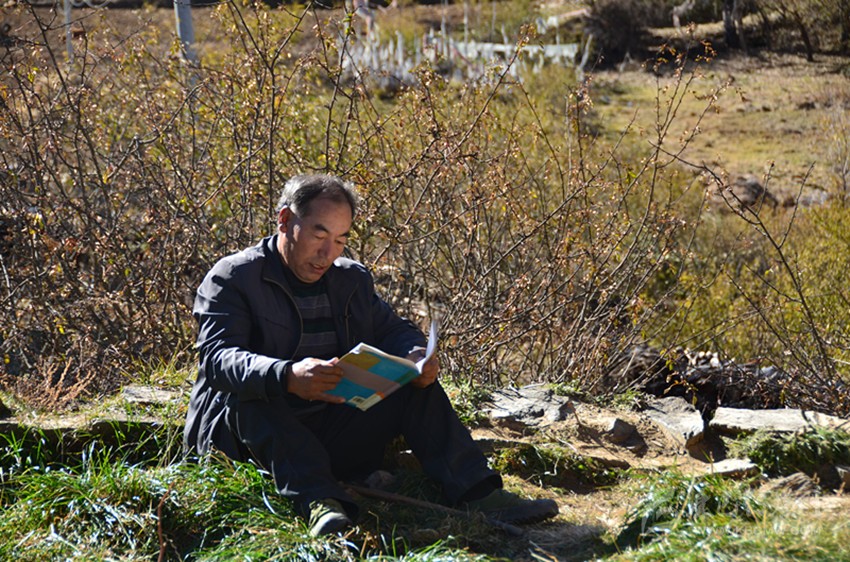 在長(zhǎng)納村小里,筆者和阿布里老師攀談起來(lái)。筆者注意到,眼前的他臉上刻劃下一道道歲月積攢的皺紋,兩鬢已布滿銀絲,雖然略顯蒼老,然而精神卻很矍鑠。他告訴筆者,在他的一生中,最遺憾的是沒(méi)有考上更高一級(jí)的學(xué)校,實(shí)在愧對(duì)父母,最高興和引以為豪的是選擇了這份職業(yè)。他扳著指頭嘴里默默念叨著:“阿措、嘎布……,我的學(xué)生中有二十五位走上了工作崗位。”看著他那張飽經(jīng)風(fēng)霜的臉,我心底不由得泛起陣陣漣漪,為這位村小的守護(hù)者暗暗喝彩。