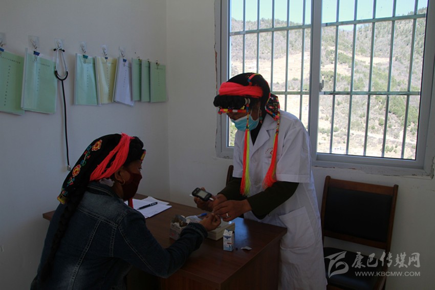 長納村黨員活動室外,一位婦女戴著口罩在曬太陽??吹焦P者來了,連忙站起來,笑著用嘉絨語向筆者打招呼。交談中筆者得知,她叫阿吉,今年54歲,前段時間由于血壓高,常常頭疼、頭暈,只能躺在床上。后來,村醫(yī)來到她家,為她測量了體溫,并帶來了降壓藥,服藥后她的癥狀有了很大改善。她今天到村衛(wèi)生站是來檢測一下血壓,順便買一些抗感冒的藥物。當(dāng)筆者問及村衛(wèi)生站醫(yī)生的情況時,她告訴筆者,村衛(wèi)生站的這名醫(yī)生是一位醫(yī)術(shù)高超的醫(yī)生,也是一位值得信賴的醫(yī)生,更是一位讓人放心的醫(yī)生。