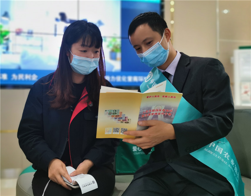 本網(wǎng)訊 近日,農(nóng)行甘孜分行各網(wǎng)點積極開展愛護人民幣、反假貨幣宣傳。圖為農(nóng)行網(wǎng)點客戶經(jīng)理“一對一”對藏族群眾講解人民幣常識。