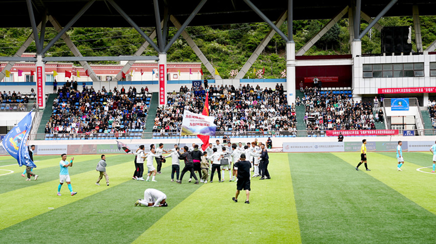 比賽進(jìn)入下半場(chǎng),雙方一上場(chǎng)便持續(xù)強(qiáng)勁攻勢(shì),比賽至第52分鐘時(shí),甘肅甘南隊(duì)成功避開(kāi)四川阿壩隊(duì)再次射門(mén)進(jìn)球又得一分,在全場(chǎng)喝彩聲中,甘肅甘南隊(duì)全體隊(duì)員士氣高漲,乘勝追擊。比賽至65分鐘,甘南隊(duì)再進(jìn)一球,比分?jǐn)U大至3:0。此時(shí)四川阿壩隊(duì)迅速調(diào)整狀態(tài)和戰(zhàn)術(shù),發(fā)起強(qiáng)勢(shì)進(jìn)攻,在比賽進(jìn)行至93分鐘時(shí),憑借一個(gè)任意球破門(mén)得分。比賽得分最終鎖定在3:1,甘肅甘南隊(duì)贏得比賽勝利。