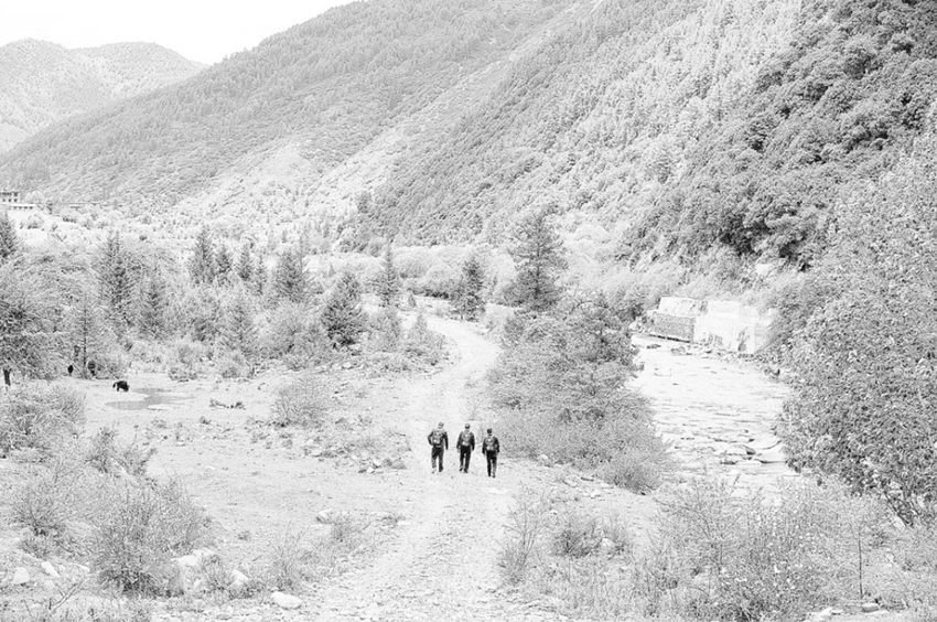 G227國道麥日至巴亨埡口段全線地形地質(zhì)條件復(fù)雜,山高險(xiǎn)峻,河谷幽深,地形切割破碎,屬典型的高山峽谷地貌。最高海拔處達(dá)4200米,每年11月至次年3月為高寒氣候,有效施工期短;大部分路段處于“無人區(qū)”,施工路段多臨水臨崖,施工場地狹小,機(jī)械設(shè)備難以高效發(fā)揮作用;同時(shí)還存在路基垮塌、高空飛石、懸崖墜落等多種安全風(fēng)險(xiǎn)。