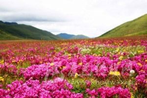 木雅圣地景區(qū)坐落于康定折多山西側(cè)的“木雅辛康”,是一座以民俗風(fēng)情與自然風(fēng)光相結(jié)合的,以體現(xiàn)藏族木雅文化為主題的專題旅游區(qū)。擁有雪山、草原、花海、河流、湖泊和木雅藏族民俗文化等眾多旅游景觀,共有5個(gè)主要景點(diǎn),“花海尋蹤”是當(dāng)年木雅公主很愛游玩之地,也是整個(gè)景區(qū)花開得很早很茂盛的地方?!拌笠羲透!笔悄狙诺貐^(qū)享有盛名的藏傳佛教寺廟?!疤旖缒粮琛笔悄狙艊鴤鹘y(tǒng)的冬季放牧之地,這里牧草極為豐富?!胺鹩幽狙拧笔且粋€(gè)用經(jīng)幡制作而成的釋迦牟尼佛像?!叭悍鍑痢笔亲o(hù)衛(wèi)木雅國的一道天然屏障。