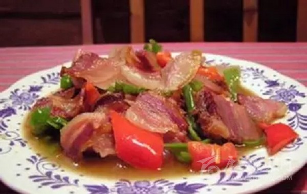 嘉 絨語稱“大古兒”,與香豬腿一樣,豬膘是丹巴的土特產(chǎn)之一。境內(nèi)居住在高山半高山一帶的藏羌群眾家家做豬膘。豬膘就是豬的肥膘做成的,一頭豬砍去四個“肘 肋”肉,去頭和項圈后,余下的從背梁上剖開,做成兩扇豬膘,在一鍋開水里煮成半熟,取出后,用木棍將其撐開弄直,在露天里凍兩天晚上,待基本成型后掛曬晾干。一般每戶人家在藏房的二樓有固定的房間放肉,在房間內(nèi)搭設一個架子,把豬膘平放在架子上,一扇重一扇。家庭富足的每年能積存一定數(shù)量的豬膘,幾年后, 已堆滿一個房間。豬膘的食用方法各個地方有所不同,境內(nèi)邊耳鄉(xiāng)一帶一般吃生豬膘,每當寨子里有人家蓋房、辦喜事,會提前做很多火燒子饃饃,切很多塊狀的豬膘;當天幫忙的一人發(fā)一個火燒子饃饃、一塊豬膘肉;豬膘一般不去毛,食用的時候在滾燙的茶水里浸泡一會兒,然后用刀將皮毛去掉,然后和著饃饃食用。小金溝 一帶有用豬膘做“墩子”肉(又稱“坨坨肉”)的習俗,“墩子”肉是“九大碗”中的主菜,其做法是把豬膘切成塊,放上佐料,用文火燉耙,然后一碗一碗舀上桌食用,“登子”肉燉的時間越長就越香。境內(nèi)其他一些地方普遍把豬膘煮熟切成片和著饃饃食用。